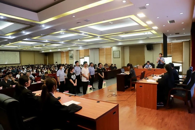 模拟庭审案件根据张家界市永定区人民法院审结的一起贩卖、运输毒品的刑事案件改编。永定区人民法院全程指导排练并为活动提供了法袍、法槌等服装、道具,营造庄严肃穆的法庭环境,助力活动高效开展。模拟庭审过程中,我院21级法学专业同学们高度还原了庭审真实场景,让活动参与者身临其境,在体验审判过程的同时接受了一次生动的法制教育。